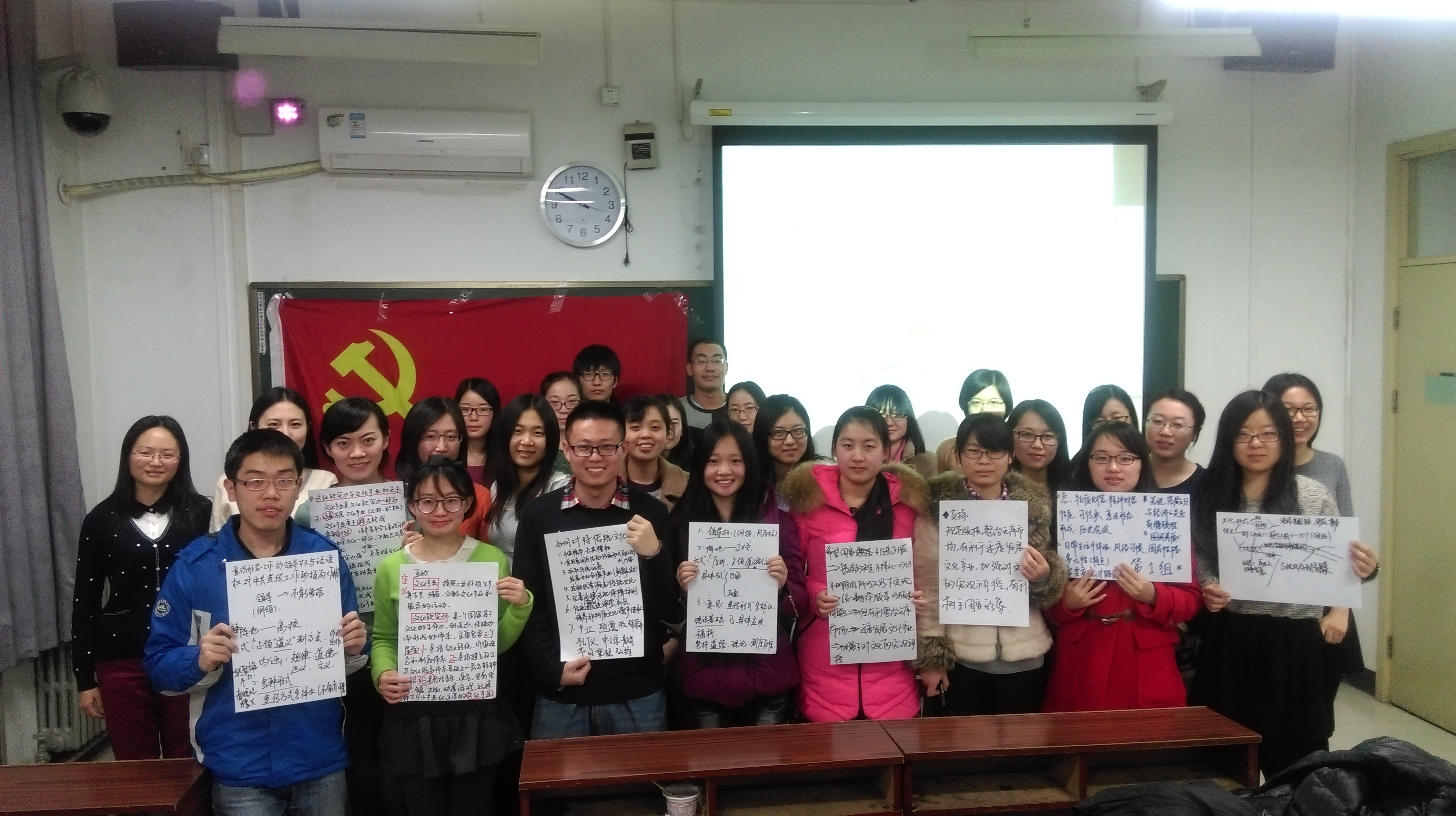 会上,大家讨论积极,气氛融洽,在各小组长的协调组织下,各小组问题分工明确,讨论热烈,交换组员的过程也井然有序,预期的各个讨论环节都得到了圆满的完成。讨论中,同学们针对当下的一些热点问题,畅所欲言,结合实际生活感悟和对党和国家文化政策的理解,进行了深入的探讨和精彩的分析。更为可喜的是,同学们在讨论中还出现了几次“小交锋”,不同专业方向背景下的同学通过这次热烈的讨论活动,触碰出了思想的火花,并由记录员和小组长在汇总发言中作了充分的展示。