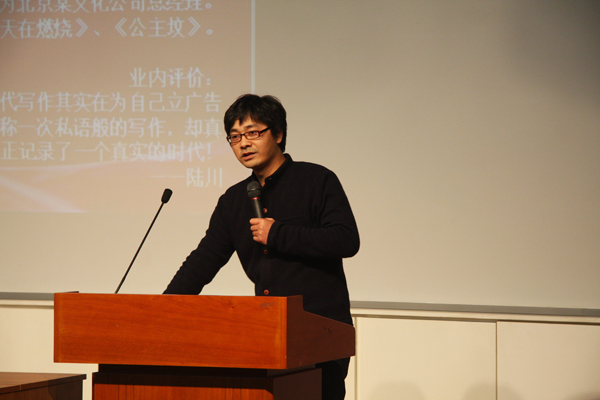 张五毛作了题为“一个理想主义者的奋斗”的演讲。在讲座中,他以一个奋斗者的角度跟大家分享了自己从穷困潦倒、堕落无志到理性成熟、小有所成的人生历程和感受,同时介绍了自己写作的经验。张五毛在演讲中强调作为一个年轻人要有自己的理想,并且在生活的挫折和考验面前要学会坚持自己的理想、勇敢地担负起自己的责任,将履行责任和实现理想作为一个统一的过程看待;同时张五毛鼓励同学们要积极地面对自己的大学生活,要多看书、多游历、多见闻,同时培养一个健康的爱好,从而建立起使自己在困难时期仍然能够积极乐观的精神享受。结合现在的风气和时局,张五毛鼓励我们要用理性、健康、阳光、自信的心态来看待当今的社会,努力培养自己的公民素养和文明理性,实现自己的现代化,努力将自己身上的封建余孽和阴暗思维剔除掉。