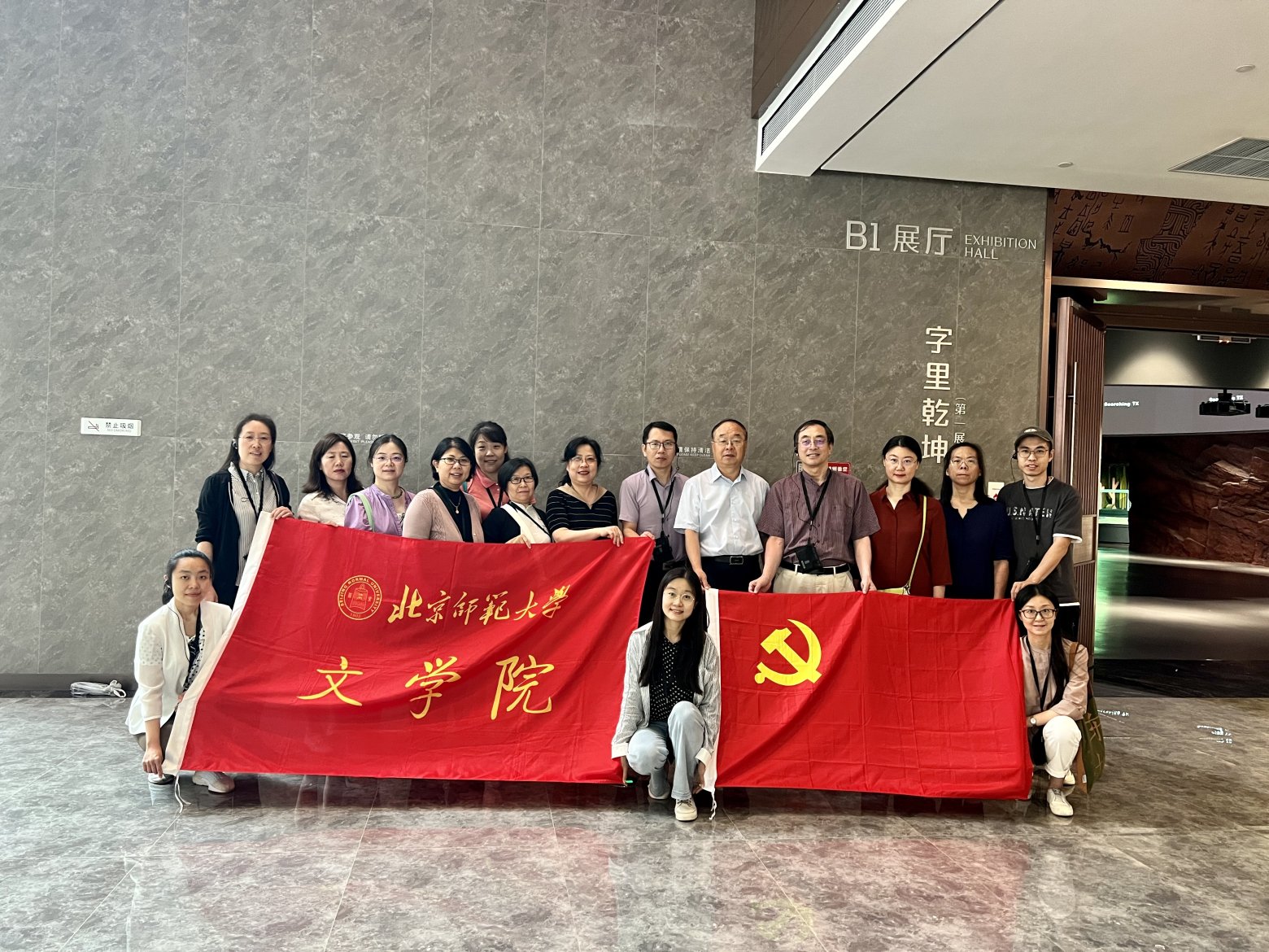 文学院党委一行赴中国文字博物馆,相继参观了序厅、“中国文字发展史”基本展览、“一片甲骨惊天下”、“汉字民俗”、“字书琼林”、“书苑英华”、“字里乾坤”等专题展览,以及互动影像厅、特别展览,其中部分展厅是在北师大文学院古代汉语教师团队的助力下设计完成的。中国文字博物馆资料详实、布局严谨,从不同角度、以不同形式展现中国文字之美,特别是科技感与现代化并重,更加为传统文字赋能添彩,吸引观众深入互动。