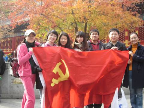 秋风送爽,香山层林尽染,色彩斑斓蔚为大观。时值出游时节,文学院2011级博士生第三党支部同学齐聚香山脚下赏红叶、展红旗、砺红心。值此中国共产党成立90周年及辛亥革命100周年之际,同学们一道欣赏美景、重温入党誓词、参观国父中山先生纪念堂及其衣冠冢,缅怀革命先烈继承遗志坚定信仰。