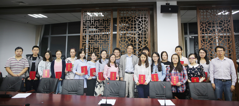 王立军老师和周云磊老师分别宣读了在学校“七一表彰”以及学院评选中获得“优秀共产党员”、“先进党支部”等荣誉的先进个人和先进集体名单,并为获奖者颁奖。江雪、梅茹瑜、崔嘉琪等8名同学荣获北京师范大学“优秀共产党员”称号,2014级硕士生第二党支部、2015级硕士生第一党支部荣获校“先进党支部”称号,2014级硕士生第二党支部主办的“勿忘历史·共赞和平”——纪念反法西斯战争胜利七十周年主题党建活动荣获校“优秀党日活动”;白如、张洁敏、张臻等24名同学荣获文学院“优秀共产党员”称号;2015级硕士生第一党支部申报的“学经典,理论品读——支部系列读书会”、2015级硕士第三党支部申报的“搭建支部学习网络,凝聚党员学习热情”被收入2015-2016学年研究生优秀党建活动创新案例集;2014级博士生第一党支部申报的“知行合一,紧抓专业——博士生党支部主题党日活动开展的途径与思路”被收入中宣部《党建》杂志北京师范大学专刊。