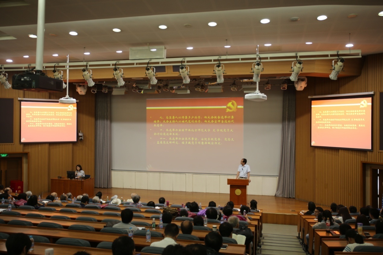 文学院分党委党员大会在文学院党员师生热烈的掌声中圆满结束。预祝北京师范大学第十三次党代会取得圆满成功!