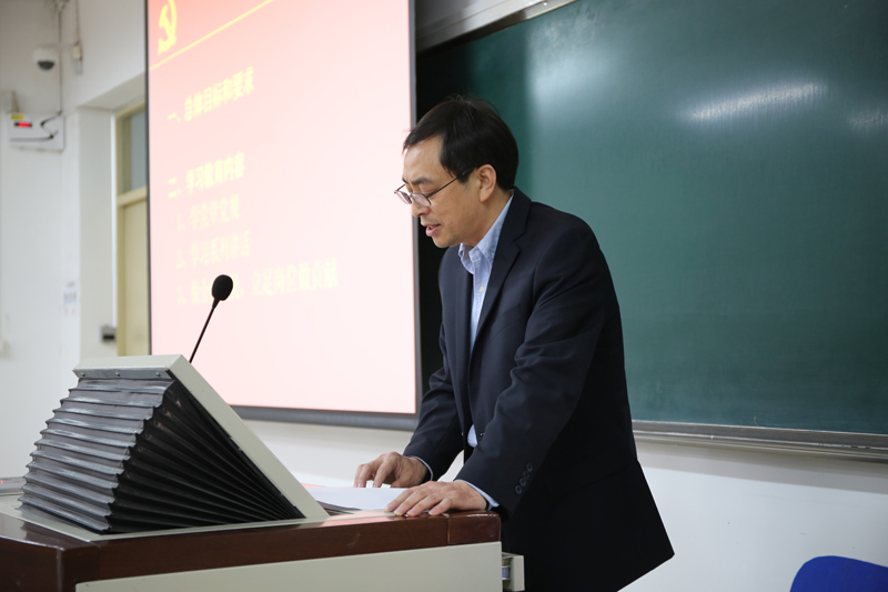 文学院分党委书记王立军传达了中央和学校党委关于“两学一做”学习教育的指示精神,对《中共北京师范大学委员会关于在全体共产党员中开展“两学一做”学习教育的实施方案》提出的总体要求和目标、学习教育内容、具体方法措施以及工作要求进行了详细说明,并代表学院分党委对学院的学习教育工作进行了具体部署。他详细阐述了三个“三结合”的学习教育工作思路。即在工作理念上,责任意识、问题导向和创新精神“三结合”;在组织方式上,教职工、本科生、研究生党支部“三结合”;在学习内容上,理论、专业和实践“三结合”。要求各党支部高度重视,发挥特色优势,强化执行落实,用三个“三结合”推动学院“两学一做”学习教育深入开展。
