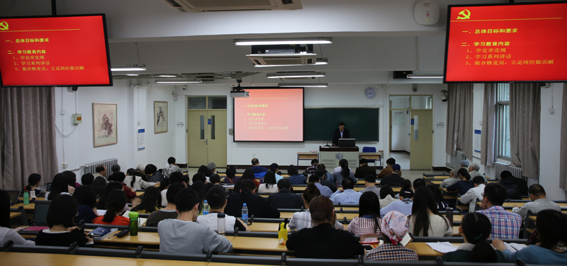 4月27日,文学院召开“两学一做”学习教育动员会。文学院分党委书记王立军、院长过常宝、副书记方红珊、周云磊,以及分党委委员、教工党员、离退休教师党员代表、学生党支委等近百人参加了大会。