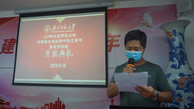 2020年9月10日上午8时30分,在教师节当天,“北京师范大学-河南省水源区初中语文骨干教师研修班”开班典礼圆满举行。北京师范大学文学院张国龙教授出席,40位来自河南省水源区的初中语文骨干教师参加了开班典礼。