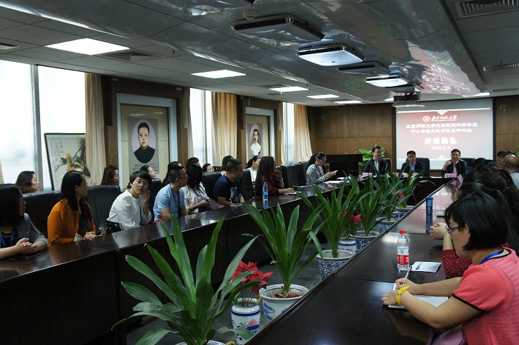 本次典礼包括“介绍与会领导与嘉宾”“领导与嘉宾致辞、讲话”“学员代表发言”三部分。在教师们的掌声中,北京师范大学文学院发展合作中心主任张国龙副教授发表致辞,向与会来宾与到场教师表达了最诚挚的欢迎与感谢。其后,北京市教委办公室副主任王力志发表讲话。王力志副主任通过自身经历讲述了内蒙古锡林郭勒盟地区的教育现状,并表明此次研修班是将北京教育资源与内蒙古教育资源共享、优化的典范,有助于均衡地区教育资源,优化内蒙古已有教育资源,为内蒙古教育事业做出一定的贡献。