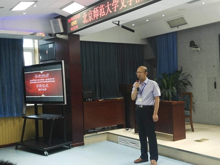 北京师范大学文学院发展合作中心主任张国龙首先向与会的各位老师表达了最诚挚的欢迎与感谢,并介绍了北京师范大学文学院的历史发展,最后衷心祝愿此次研修活动能够圆满结束。其后,乌兰察布市教育局师资科科长方泽发表讲话。方科长表示此次研修班的举行凝聚了北京师范大学文学院以及乌兰察布市教育局共同努力的心血,对于此次来参加研修的九十四位乌兰察布市的老师们是一次非常难得的学习体验。除此之外,他就此次高级研修班的课程安排给予了高度的肯定,表示将“专业性的学术讲座”与“学校课堂观摩”结合能够在最大程度上满足物理和化学老师的学习诉求。他希望各位老师珍惜此次机会,积极配合北京师范大学文学院此次的课程安排从而有所收获。
