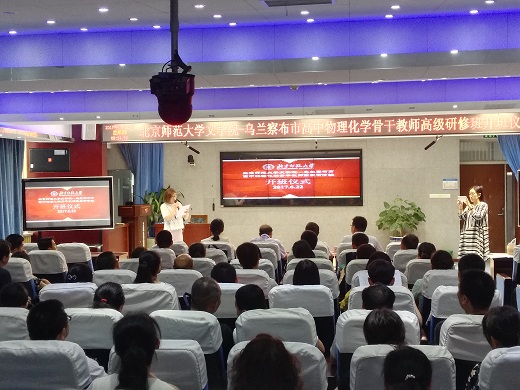 2017年6月22日星期四上午8时30分,北京师范大学文学院乌兰察布高中物理化学骨干教师高级研修班开班典礼于北京师范大学第三附属中学北校区报告厅顺利召开。此次典礼由北京师范大学文学院发展合作中心副主任张帆主持,乌兰察布市教育局师资科方泽科长以及北京师范大学文学院院长助理、发展合作中心主任张国龙副教授出席了此次开班典礼。