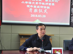 2018年3月20日星期二上午9时,深圳市宝安区“薪火计划”小学语文骨干教师素养提升高级研修班开班典礼于北京师范大学后主楼5049教室顺利召开。此次典礼由北京师范大学文学院发展合作中心副主任张帆主持,深圳市宝安区教育发展事务中心副主任徐辉、宝安区教科院语文教研员唐宝成以及北京师范大学文学院党委书记康震、发展与合作中心主任向飞出席了此次开班典礼。
