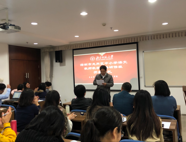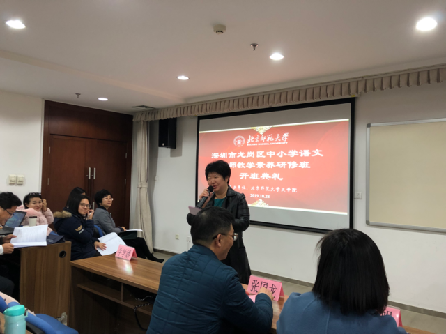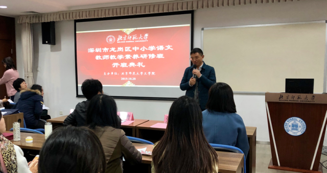 2019年10月28日上午8时30分,“北京师范大学-2019年深圳市龙岗区中小学语文教师教学素养研修班”开班典礼在北京师范大学京师学堂举行。深圳市龙岗区教师进修学校龙咏梅老师、北京师范大学文学院张国龙教授出席了此次典礼。80位来自深圳市龙岗区的中小学优秀语文教师参加典礼。