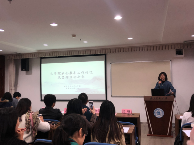 最后,北京师范大学文学院发展与合作中心副主任张帆老师向各位老师介绍了北师大文学院的悠久历史和深厚底蕴,百年师大,中文当先。北师大文学院与北京师范大学同样走过了一百多年的岁月,百年的沉淀,文化的熏陶,等候各位老师来感悟与体会。而文学院发展与合作中心成立于2013年,一直在积极履行为社会教育发展做贡献的职责。她还为各位老师们介绍了目前文学院发展与合作中心的各项交流学习的项目及成果,并再次对各位优秀语文教师的到来表示热烈欢迎。