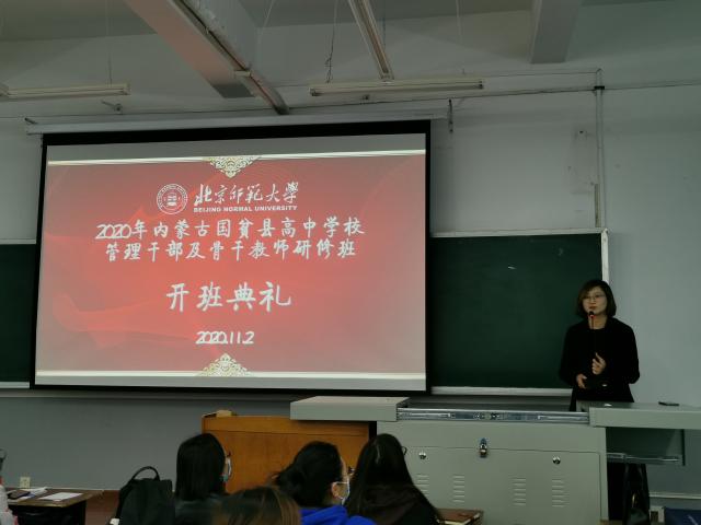 2020年11月2日上午8时30分,“北京师范大学-内蒙古国贫县高中学校管理干部及骨干教师研修班”开班典礼顺利举行。北京师范大学发展与合作中心副主任张帆老师出席了此次典礼。79位来自内蒙古不同高中的学校管理干部及骨干教师参加典礼,典礼由发展与合作中心牛学娇老师主持。