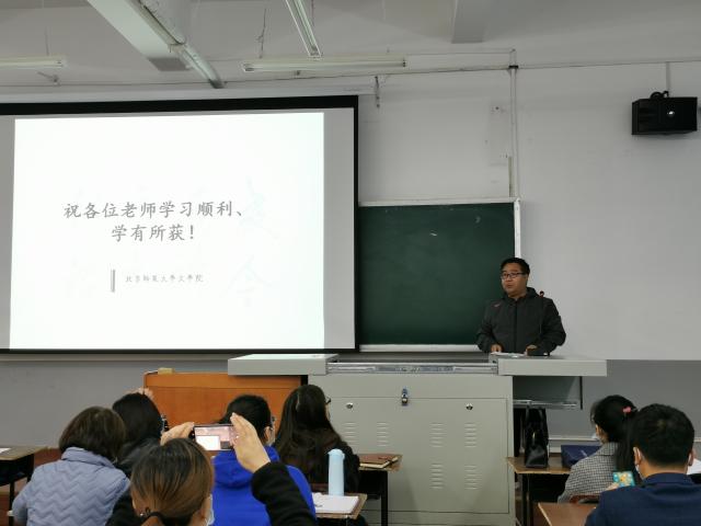 最后,文学院发展与合作中心牛老师向各位老师强调了研修的纪律要求,以及此次研修需要提交的考核任务,并介绍了研修班的服务团队。