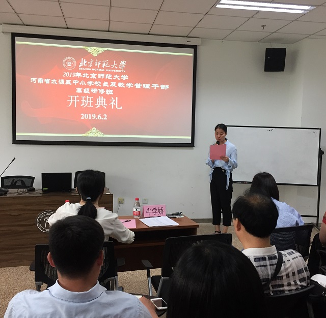 2019年6月2日上午8时30分,“北京师范大学-河南省水源区中小学校长及管理干部高级研修班”开班典礼在北京师范大学文学院举行。北京师范大学文学院发展与合作中心主任张国龙、执行主任向飞出席了此次典礼。40位来自河南省水源区的中小学校长和管理干部参加了开班典礼,典礼由发展与合作中心牛学娇老师主持。