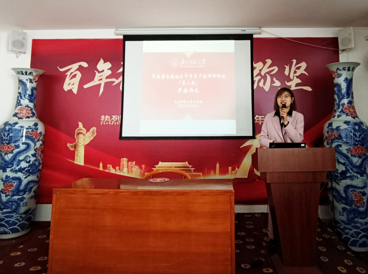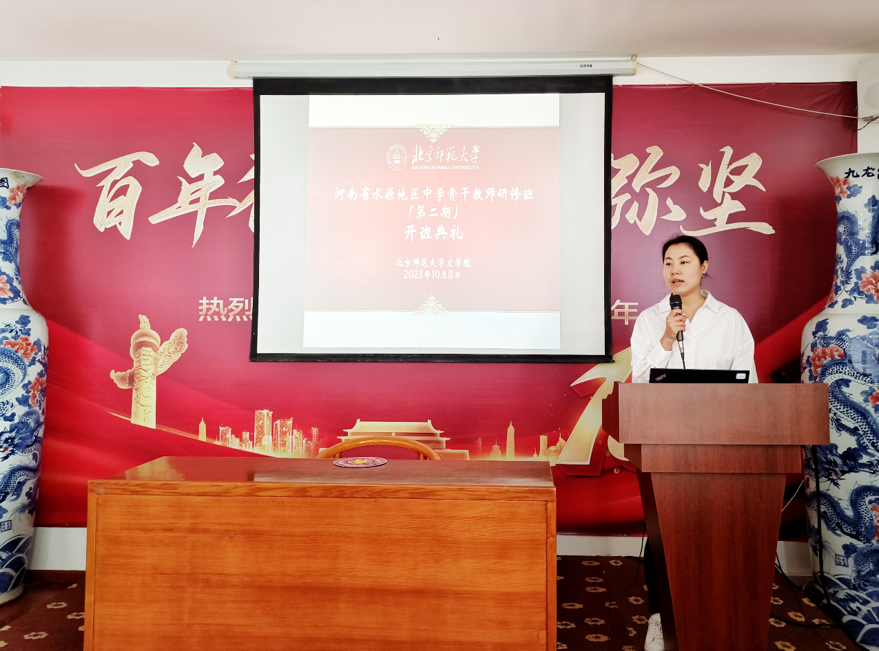 2023年10月8日上午,北京师范大学河南省水源地区中学骨干教师研修班(第二期)开班典礼顺利举行。北师大文学院发展与合作中心副主任张帆,参加研修的40位河南中学骨干教师出席了此次典礼。典礼由发展与合作中心牛学娇老师主持。