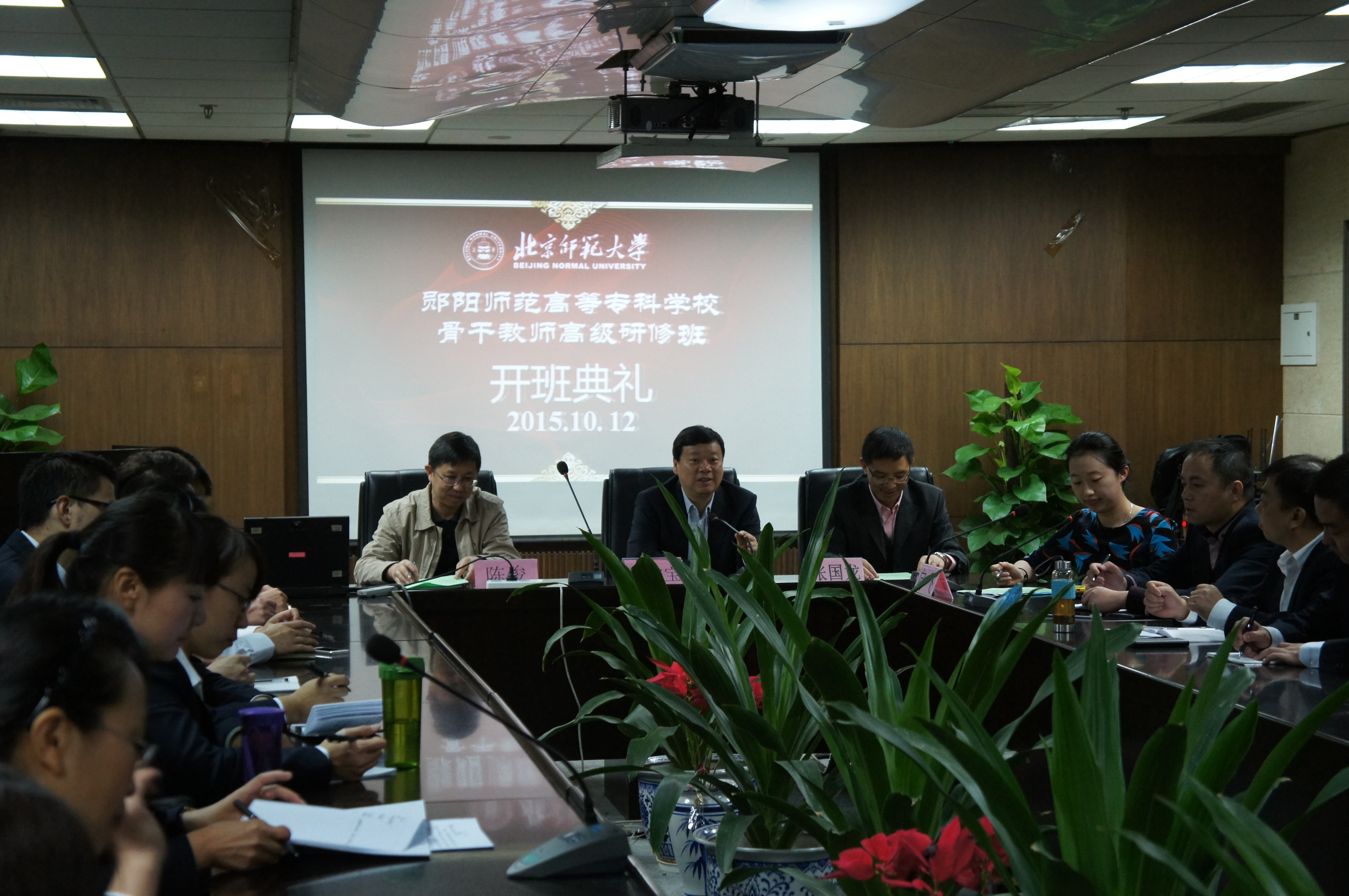 10月12日上午八点二十分,2015年郧阳师专骨干教师高级研修班开班仪式在北师大励耘报告厅举行,标志着培训活动正式开始。