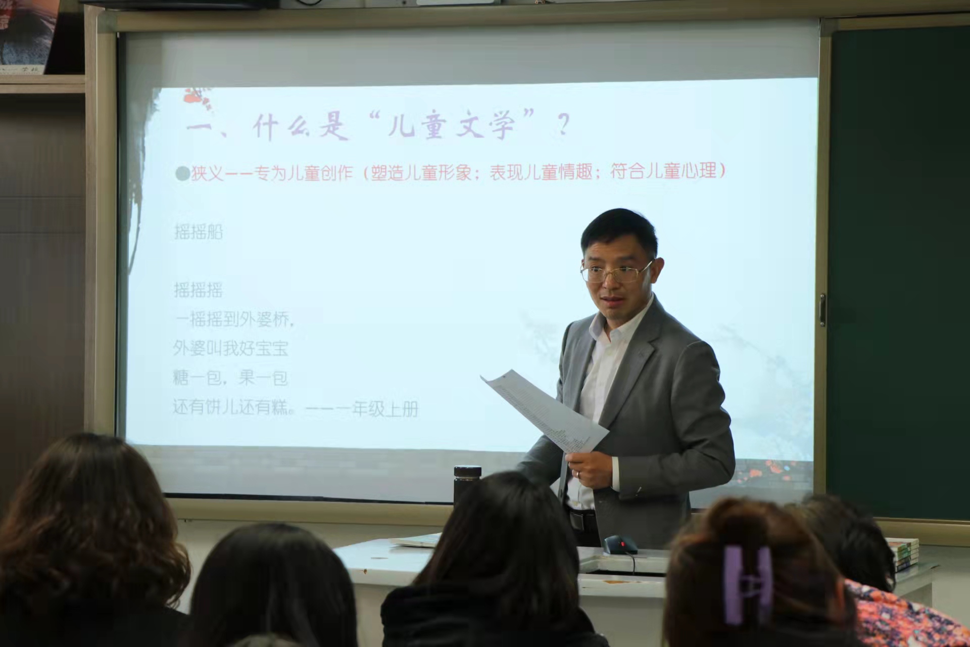 他带领老师们朗读经典有趣的“儿童诗”并探讨其内容,深化对诗歌的理解并进一步引导老师们思考“儿童诗”教学的方法;阅读童话《微笑的鱼》,体会童话作为“给孩子的爱的礼物”所具有的美学特征。老师们与张教授积极互动,现场氛围活跃热烈。