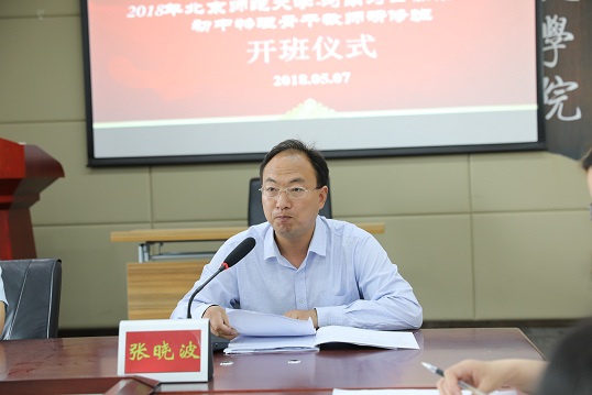 2018年5月7日星期一上午八时三十分,北京师范大学文学院-河南对口协作地区初中物理骨干教师研修班开班典礼于北京师范大学主楼C5049顺利召开。此次典礼由北京师范大学文学院发展与合作中心副主任张帆主持,北京师范大学文学院党委副书记周云磊及河南4个地级市40余名物理骨干教师出席了此次开班典礼。
