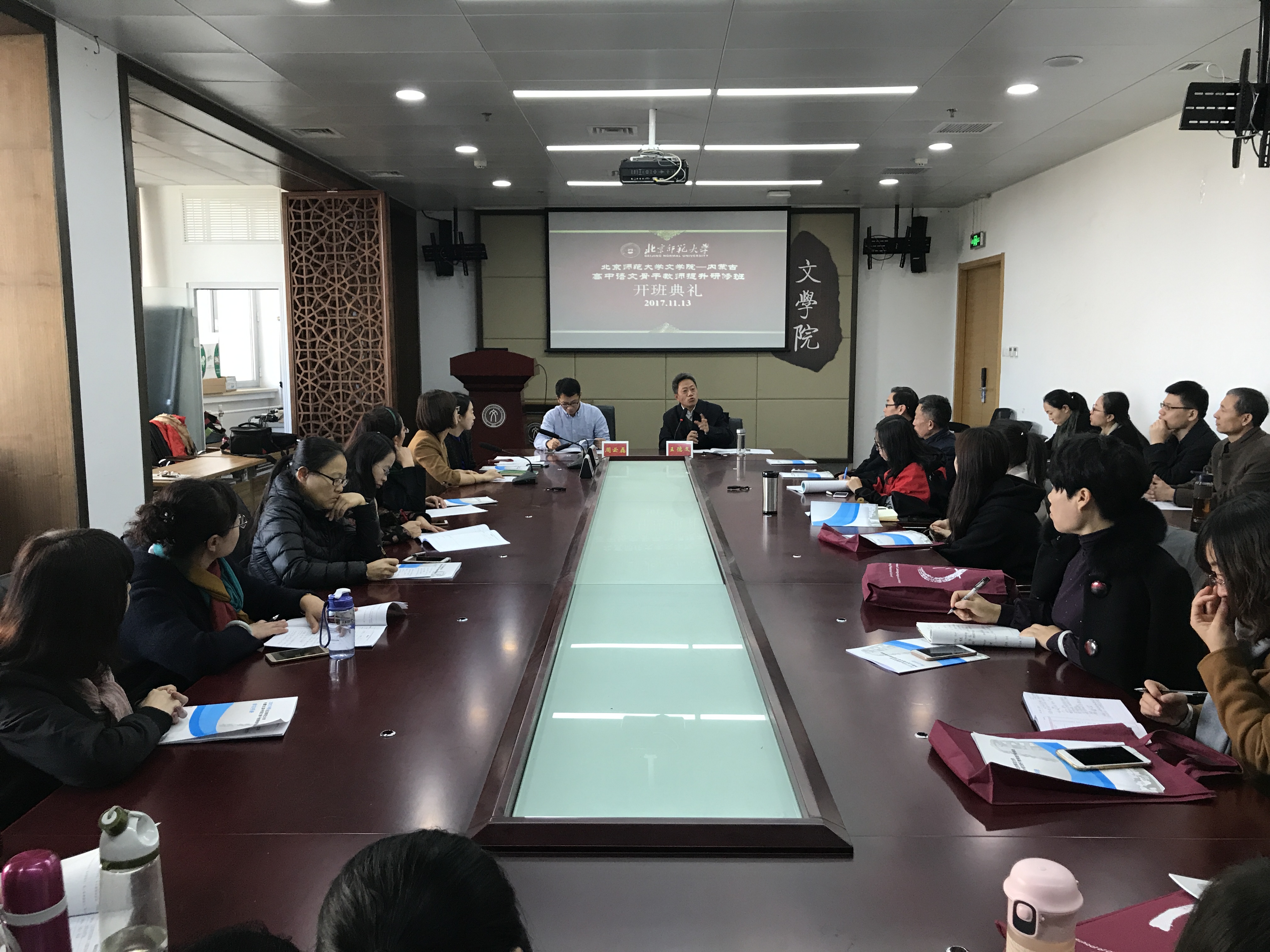 在接下来的研修期间,内蒙古自治区的各位老师们将接受来自北京师范大学和各高校的教授专家、以及一线高中语文教师的专业授课,并深入实践,去往北京市第三十五中学和人大附中朝阳校区进行实地观摩实践,获得多角度、全方位的学习与体验。北京师范大学文学院也将做好学习、生活的服务保障工作,希望此次研修班的老师们能够学有所得。