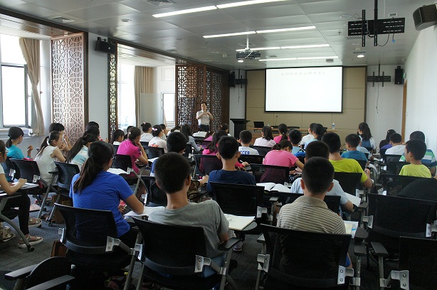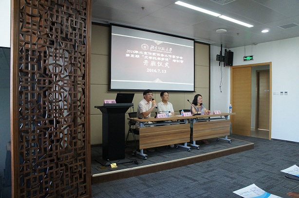 2016年7月13日上午8时30分,北京作家协会小作家分会第五期“文学托举梦想”培训营开班仪式在北京师范大学主楼C区5049教室进行。北京作家协会副主席王升山老师、北京作家协会青年儿童文学作家周敏老师和北京师范大学文学院院长助理、发展与合作中心主任张国龙出席了此次开班仪式。此次开班仪式由北京师范大学文学院发展合作中心副主任张帆负责主持。