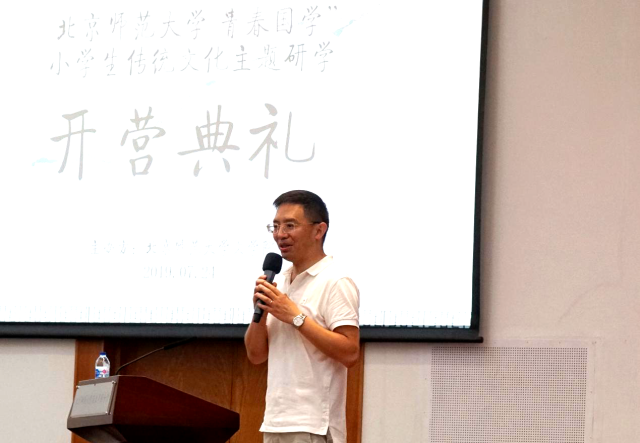 2019年7月24日,北京师范大学“青春国学”小学生传统文化主题研学开营典礼在北京师范大学英东学术会堂圆满举行。北京师范大学文学院教授张国龙,发展与合作中心主任向飞出席了开营典礼,典礼由发展与合作中心副主任张帆主持。