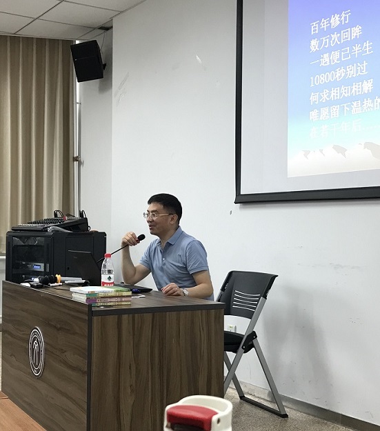 最后,文学院发展与合作中心副主任张帆老师详细介绍了本次培训的安排和纪律要求。至此,本次研修班开班典礼顺利结束,紧接着文学院发展与合作中心主任张国龙老师作了题为《教育者的人文素养》的精彩讲座。