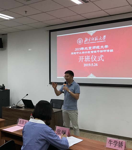 张国龙教授首先对老师们的到来表示诚挚欢迎。他在欢迎讲话中提到,北京师范大学的课堂为能够迎来45位青海玉树州教育行政管理干部而等候了117年,师范大学本身就负有培养教师的责任。他特别指出,大学课堂的独特性在于可以为学员们拓宽思路、开阔眼界,希望大家能享受与更注重细节的中小学课堂不同的大学课堂,认真聆听、积极思考,用开放的心态,多接受、多结合、多交流,扩大自己的视野和格局。最后,张教授希望老师们能够珍惜这次培训的机会,暂时放下工作与家庭,全身心地投入到学习中去,并衷心祝愿参训学院们能够学有所得、学有所成。