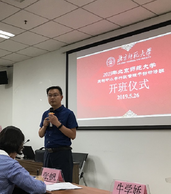 2019年5月26日上午,为期十天的玉树中小学教育行政管理干部研修班开班典礼在北京师范大学文学院隆重举行。北京师范大学文学院发展与合作中心主任张国龙教授,玉树州教育局党组成员、副局长王鸿杰,文学院发展合作中心副主任张帆,以及45名来自玉树州和下辖称多县、囊谦县、治多县、曲麻莱县的州县教育局与玉树州第二民族高级中学、玉树州民族中学、治多县完小等多所中小学的行政管理干部和教师出席。开班仪式由发展与合作中心牛学娇老师主持。