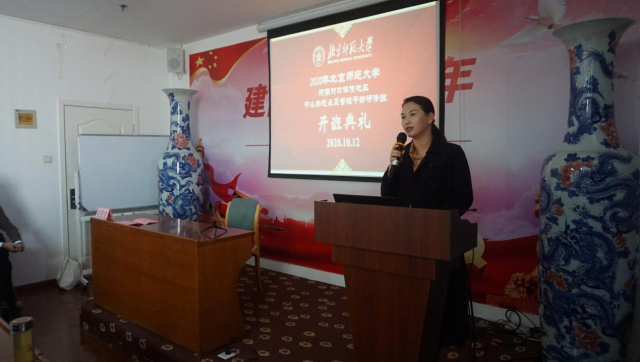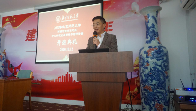 2020年10月12日上午8时30分,“北京师范大学河南对口协作地区中小学校长及管理干部高级研修班”开班典礼顺利举行。北京师范大学文学院教授张国龙老师、发展与合作中心副主任张帆老师出席了此次典礼。40位来自河南省对口协作地区的中小学校长和教学管理干部参加典礼,典礼由发展与合作中心牛学娇老师主持。