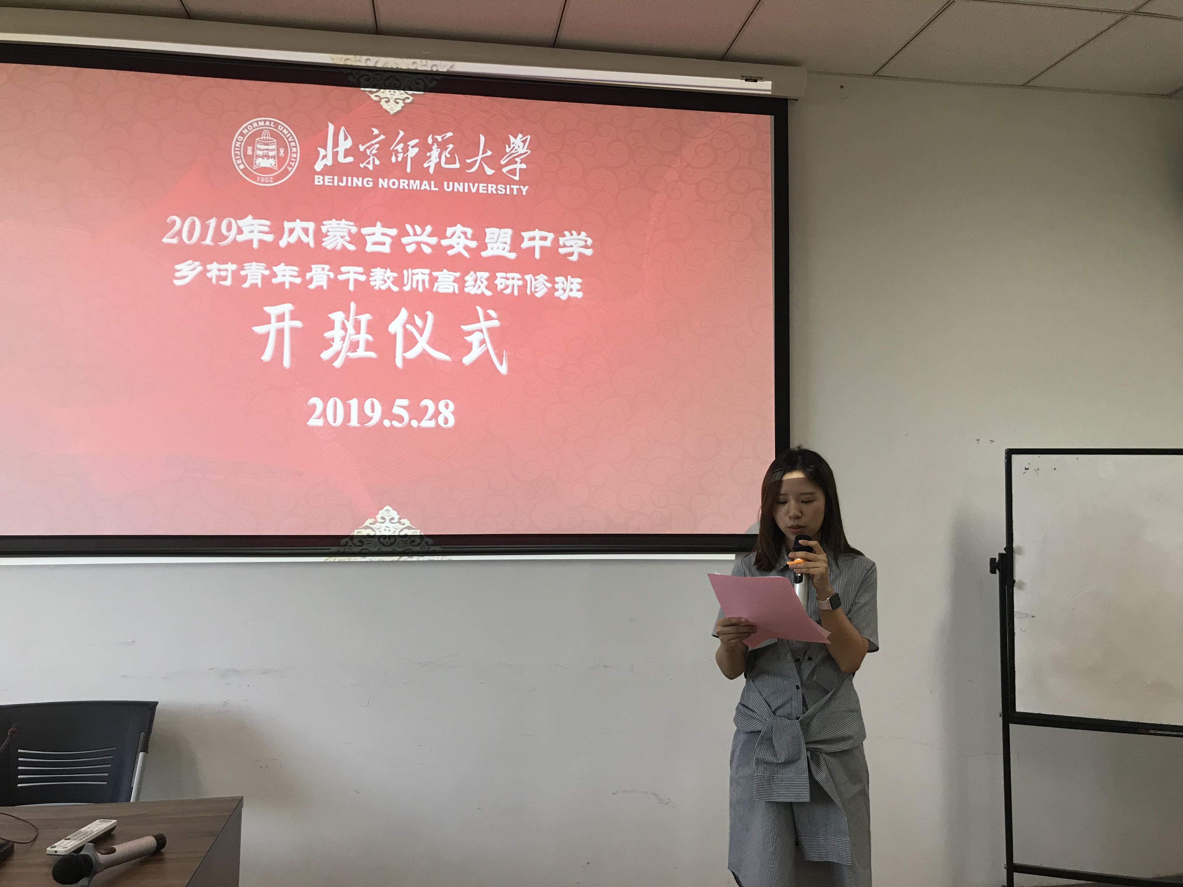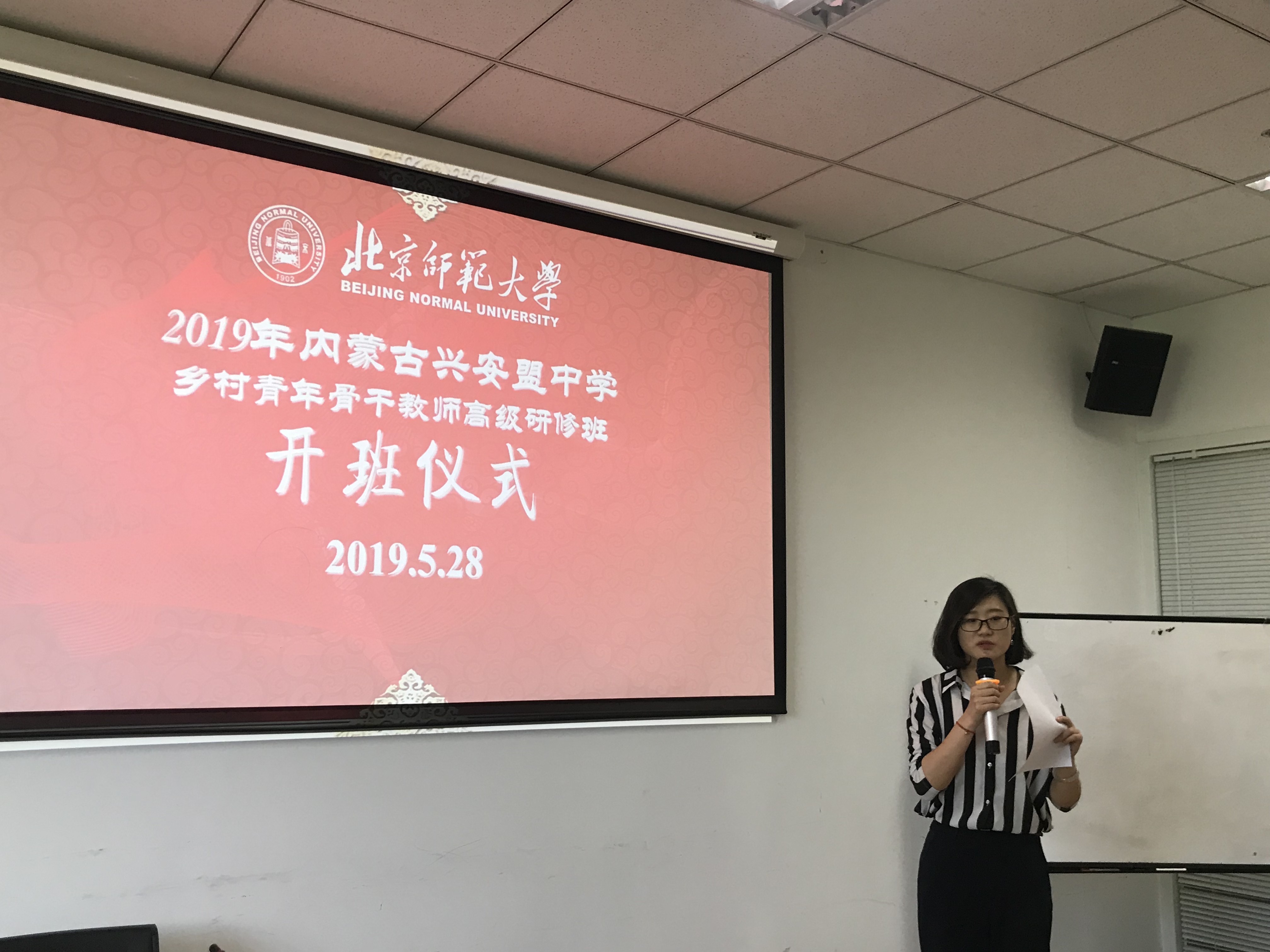 2019年5月27日上午8时20分,“北京市-内蒙古兴安盟青年骨干教师高级研修班”开班典礼在北京师范大学文学院举行。北京师范大学文学院发展与合作中心副主任张帆,兴安盟教育局教师工作科徐可,文学院发展与合作中心的老师以及参加此次研修班的50位老师出席了开班典礼,文学院发展与合作中心行政主管牛学娇主持了此次典礼。