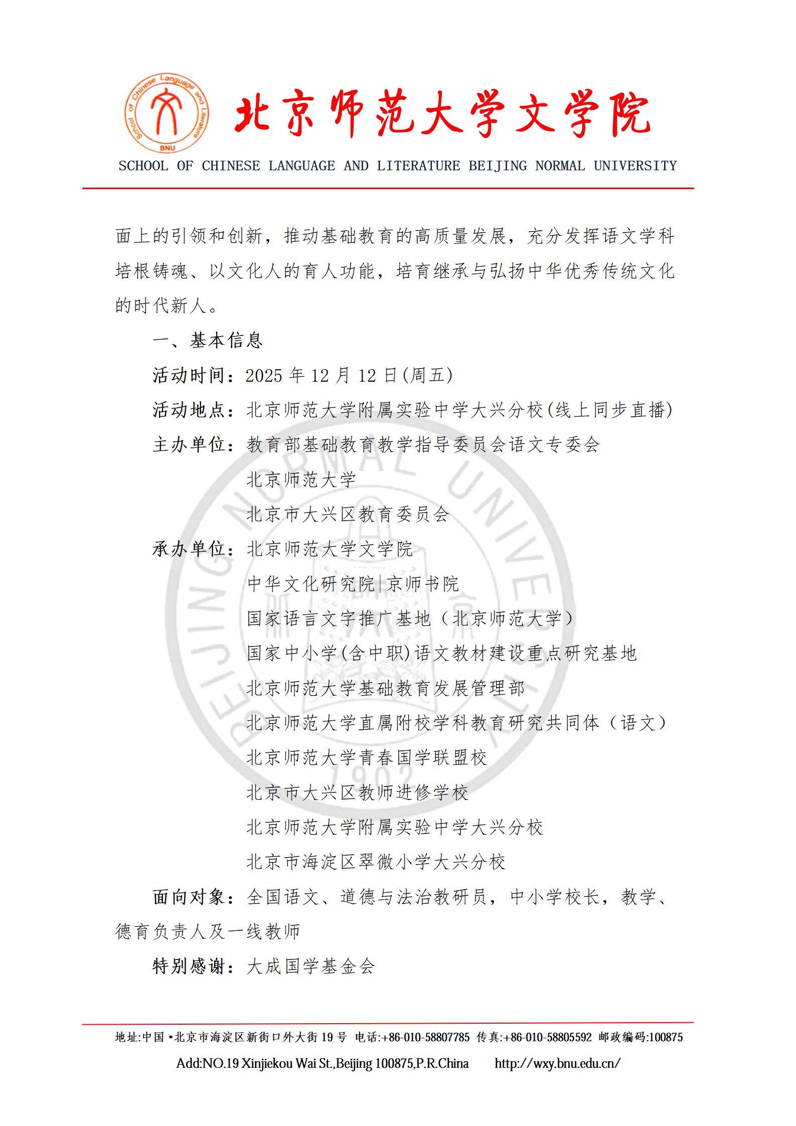 关于开展北京师范大学第十届“青春国学”传统文化进校园论坛暨诗圣杜甫经典篇目跨学段教学展示活动的通知