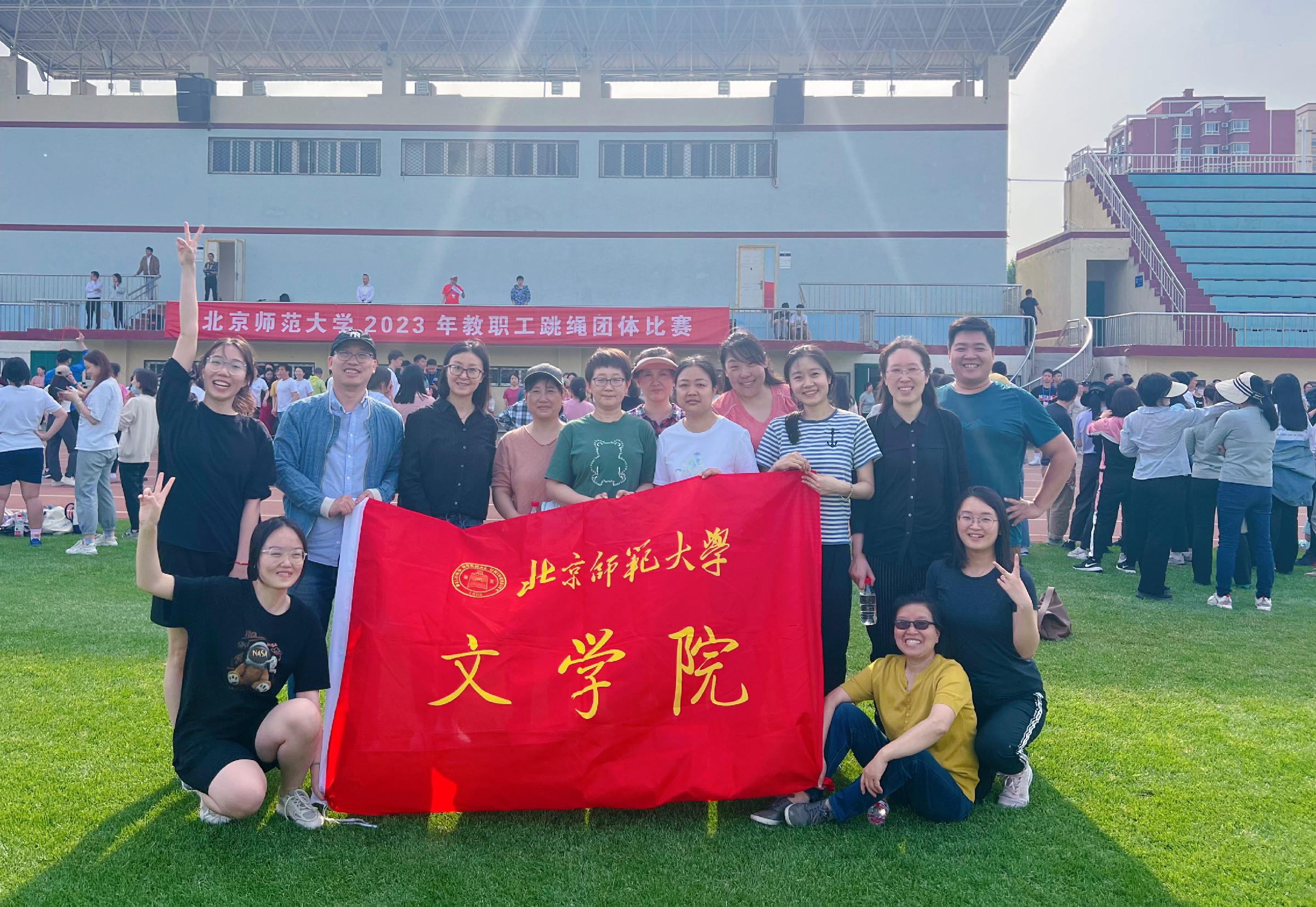 2023年5月10日,文学院教师参加校工会举办的2023年教职工跳绳比赛。我院教师李斌、马琼、陶梦真、纪婧、安稳、李敏、陈连伟、徐河、马然、余丹、徐春姣、廖欣梅、赵欣然等参加了本次比赛。