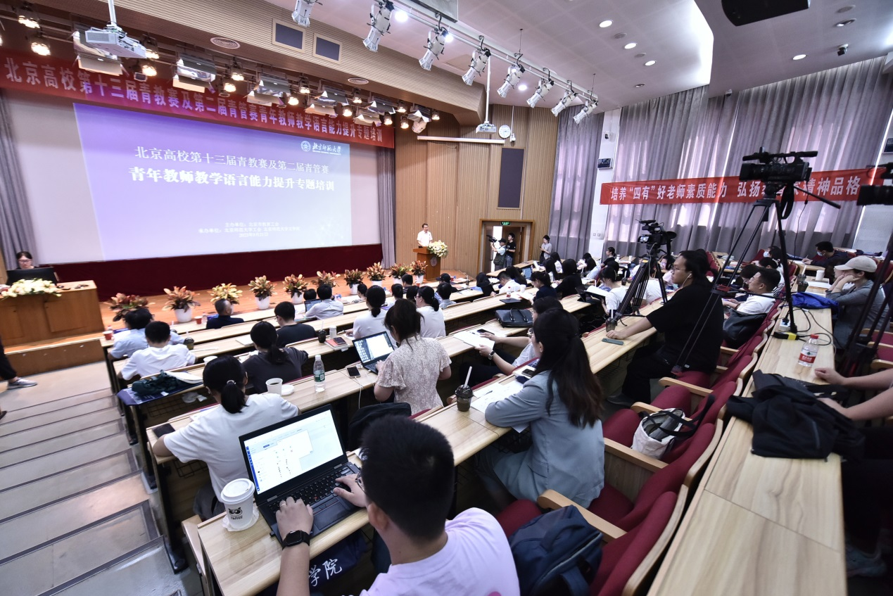 为深入贯彻落实党的二十大精神,弘扬教育家精神,提升青年教师综合素质和教书育人能力,9月21日下午,北京高校第十三届青年教师教学基本功比赛及第二届管理岗位青年教职工职业技能竞赛系列活动“青年教师教学语言能力提升专题培训”在北京师范大学敬文讲堂举办。本次培训由北京市教育工会主办,北京师范大学工会和北京师范大学文学院承办。