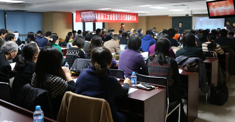 2015年1月10日上午,经校工会批准,经过两个多月的筹备,文学院在北师大邱季端体育馆召开了文学院教职工代表大会代表选举大会。经全体教职工会员(含校聘和院聘人员)民主投票,选举产生了42名第一届教代会代表,代表总数占全院教职工总人数的35%,其中,教师系列的代表占代表总数的71.4%,教辅系列(含校聘、院聘)的代表占代表总数的28.6%。