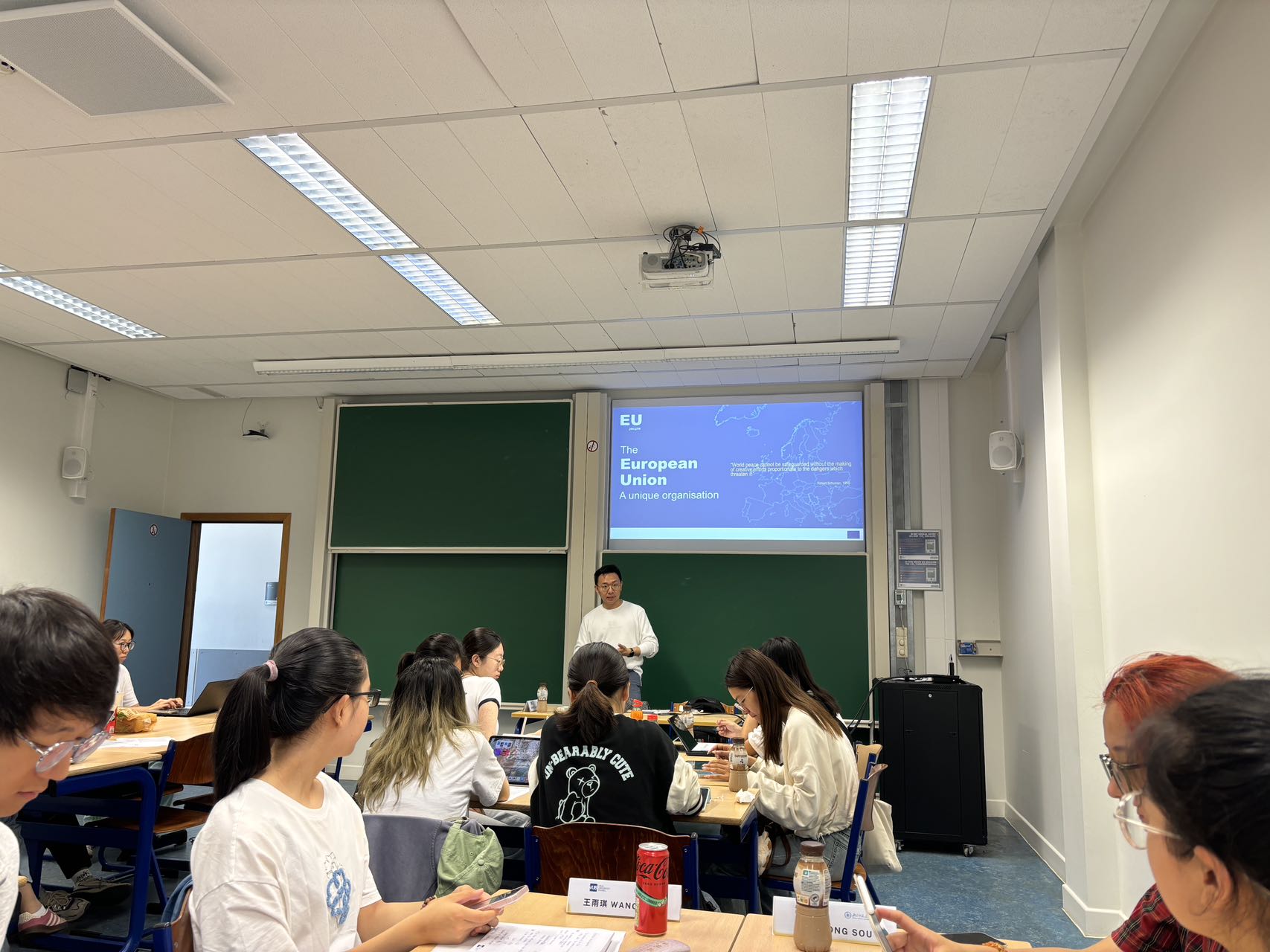 随后,布鲁塞尔自由大学为参加此次国际课程班的全体同学举行了正式的开班仪式。布鲁塞尔自由大学校方代表Jan Cornelis教授、国际课程班负责人朱畅教授出席并致欢迎辞。朱畅教授首先介绍了国际课程班的课程设置及考核要求。Jan Cornelis教授对欧洲的文化历史进行了简要而清晰的梳理。同学们对国际课程班和欧洲的文化历史有了充分的了解,在新奇与激动中开始了为期二十多天的学习交流之旅。