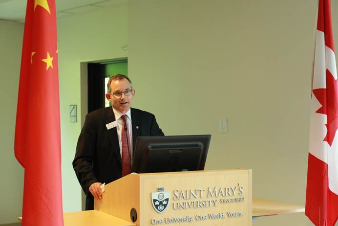 北师大文学院带队老师舒翔也作为代表发言,对提供本次机会的北京师范大学和圣玛丽大学表示感谢,同时也表达能够与圣玛丽大学师生进行深入交流的期待,希望同学们能够在加拿大度过一段愉快的、收获满满的学习生活,最终能够满载而归。