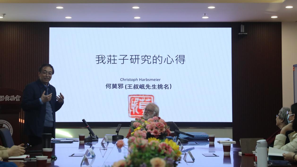 2023年11月14日下午,挪威奥斯陆大学何莫邪(Christoph Harbsmeier)教授应邀来我院做题为《〈庄子〉研究心得》的学术讲座,讲座在北京师范大学汉字研究与现代应用实验室1116会议室举行。本次讲座由北京师范大学民俗典籍文字研究中心主办,北师大文学院院长王立军教授主持,北京师范大学古代汉语研究所的王宁教授、李国英教授、周晓文教授、卜师霞教授、凌丽君副教授、刘丽群副教授和孟琢副教授等与谈。