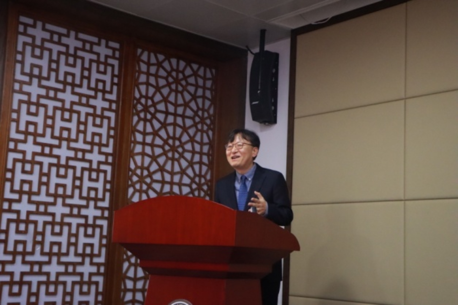 延世大学中文系主任徐维辰教授对王立军院长及北师大文学院师生的热情接待表示了感谢。徐维辰教授在致辞中指出,延世大学中文系历来有着自主创造、严谨求实的优良学风,两校在以往交流周活动中收获斐然,未来的通力协作必将有更广阔的发展前景。徐教授预祝论坛圆满成功,希望两校师生保持亲密交流,充分切磋见闻,结出丰硕成果。