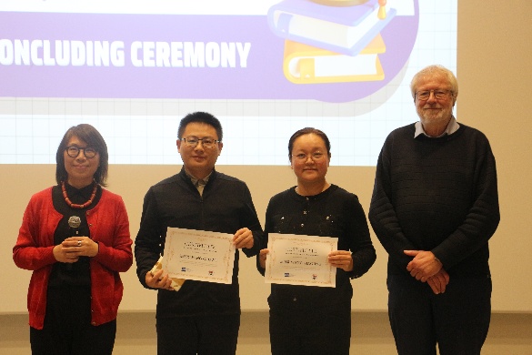 随后,Jan Cornelis教授、朱畅教授,带队老师汪高武副教授、王潇静老师为每位同学颁发了结营证书,并为优秀论文小组、最佳演讲、优秀营员、最佳营员、优秀班长、优秀班主任、优秀助教等奖项颁发了获奖证书及奖品。颁奖结束后,两位带队老师还代表北师大文学院给外方教授及助教赠送了纪念礼。