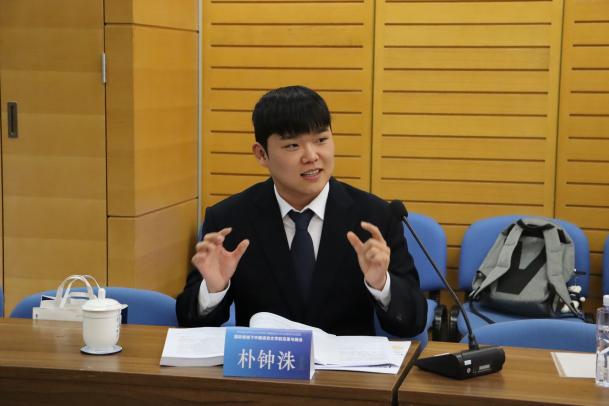 第三场由延世大学的郑南娜老师担任主持人,北京师范大学的许小颖老师担任评议人。北京师范大学的满德日瓦作《通古斯鄂温克语否定词类型及其特征》报告,指出通古斯鄂温克语否定词从类型上可分为基本否定和非基本否定两类,受语言接触影响,具有一定的类型学研究价值。北京师范大学刘燕婧的《普通话时政词语的外向传播研究——以“顶层设计”在马来西亚华语中的传播为例》,以普通话时政词语为例,描写其在马来西亚华语中的融合过程与结果,进而总结出外向传播特点。北京师范大学的王雯琪报告了《事理说明语篇的情状分析》,考察事理说明语篇中句子的情状类型,分析语篇篇章地位与情状类型的对应关系,从而得到关于语篇情状分布的整体认识。延世大学的王小勤作《“X就X在”的构式义和承继链接关系》报告,考察“X就X在Y”的构式义,即可以表示范围、原因和条件,进而考察其中各构成要素的特征,X大多为性质形容词、表示结果的动词和部分名词,Y大多为体词性成分、谓词性成分和复句。随后,许小颖、郑南娜、孙银新老师分别对几位师生的发言进行了评议。