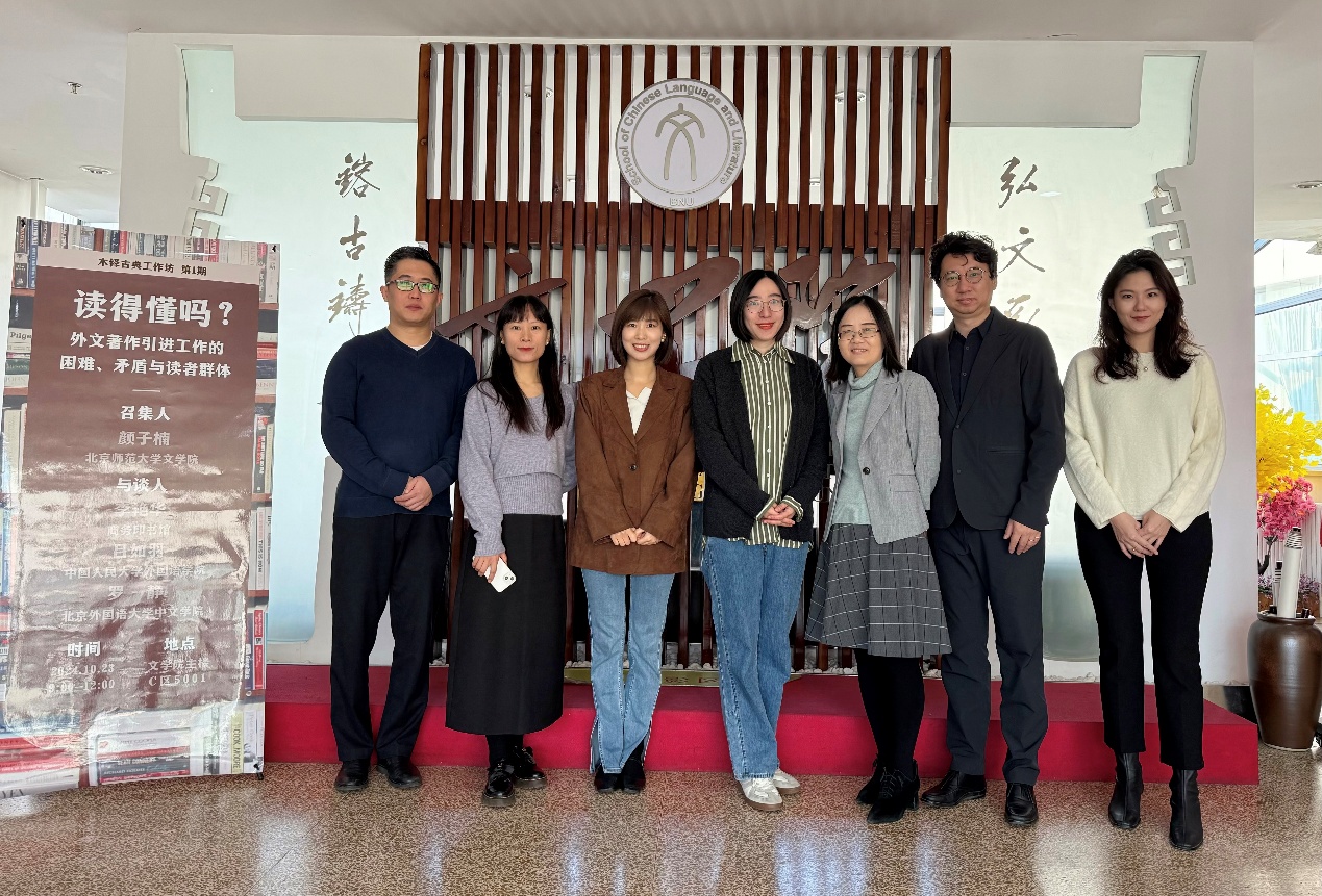 此次工作坊议题为“读得懂吗?外文著作引进工作的困难、矛盾与读者群体”,由北京师范大学文学院颜子楠召集,商务印书馆李艳华、中国人民大学外国语学院吕如羽、北京外国语大学中文学院罗静参与讨论。工作坊分析了近年来外文著作在中文翻译引进时的市场反映,着重强调外文著作选题、读者心理预期、中外知识结构差异、译著内容增减等问题。此外,国家语言文字推广基地(北京师范大学)表示了对于系列译著工作的支持。