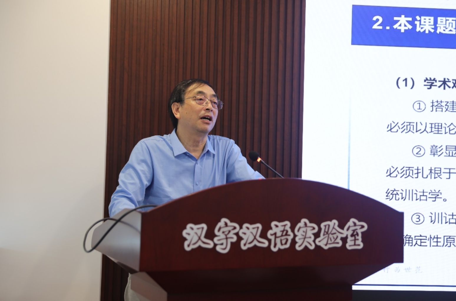 项目首席专家王立军教授代表课题组作总体报告,重点汇报了课题的总体框架、主要内容、研究思路、重点难点和预期成果等。王立军教授表示,项目的核心宗旨是:充分挖掘中国传统训诂实践所固有的阐释基因与阐释要素,与当代阐释学的前沿问题、前沿理论碰撞交融,深化中国训诂学的跨学科发展,坚持“守正创新”之路,让训诂学在多元对话的现代学术视野下,获得更为丰富、充沛的生命力。四个子课题的负责人北京师范大学齐元涛教授、中国社会科学院大学张跣教授、陕西师范大学杜敏教授、北京师范大学孟琢副教授做了分项报告,进一步说明了各个子课题的关键问题和研究方案。