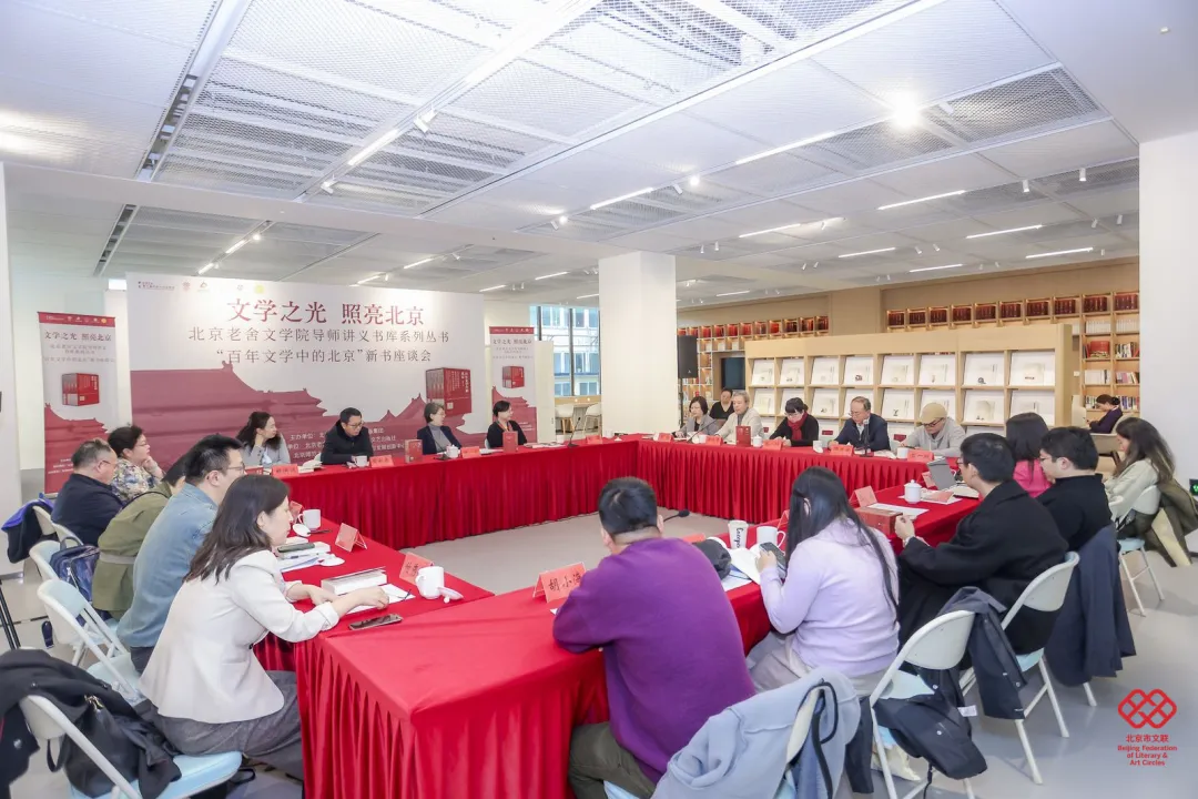 2024年10月24日上午,文学之光 照亮北京——北京老舍文学院导师讲义书库系列丛书“百年文学中的北京”新书座谈会在北京市文联艺术工坊举办。本活动是“第九届北京十月文学月”重点活动之一,由北京市文联、北京出版集团主办,北京老舍文学院、北京十月文艺出版社承办,北京师范大学北京历史文化研究与发展创新中心协办。