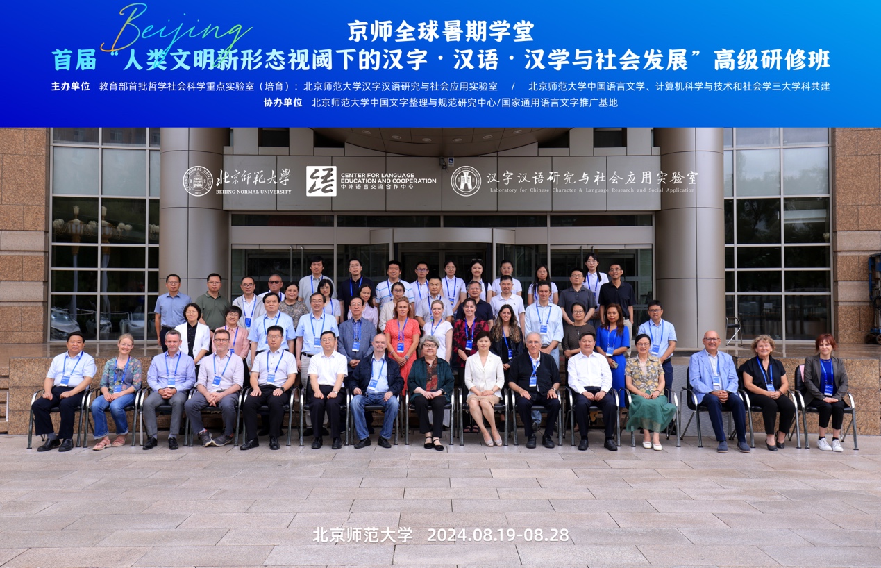 2024年8月20日上午,京师全球暑期学堂首届“人类文明新形态视阈下的汉字·汉语·汉学与社会发展”高级研修班开班式在北京师范大学隆重举行。此次研修班由北京师范大学汉字汉语研究与社会应用实验室主办,邀请了来自俄罗斯、英国、法国、德国、爱尔兰、西班牙、葡萄牙、安道尔、波兰、韩国等国的知名汉学家和教育专家深入交流,共同推动汉字、汉语、汉学与社会发展的研究和应用。