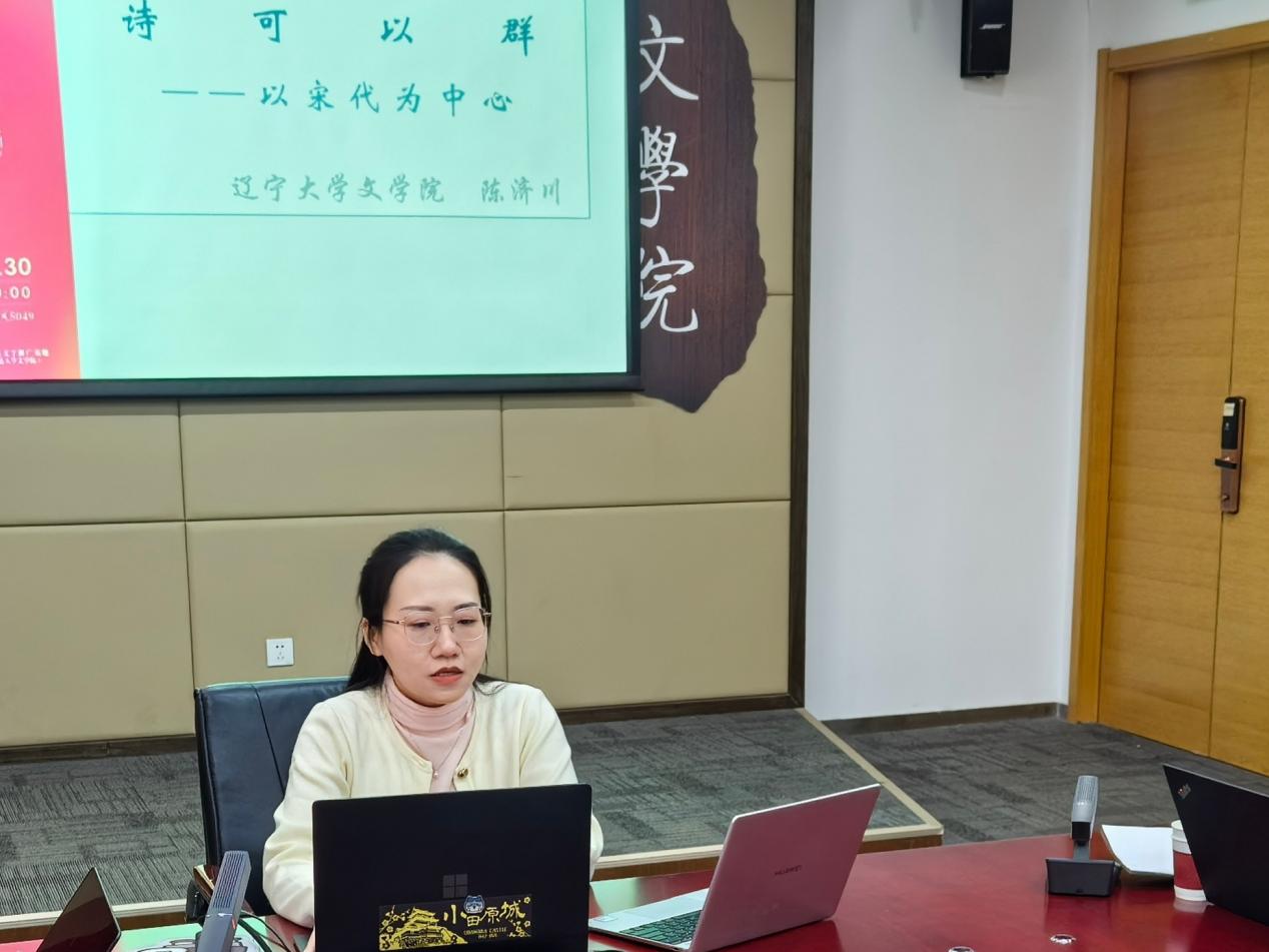 辽宁大学文学院陈济川以宋代文学为主要研究对象,回应了吴沂澐提出的一些问题。陈济川认为,集会和结社文学是应体文学的重要代表形态,并且对应体文学提出界定,辨析了应体和非应体文学的区别。陈济川指出在传统的以文学为本位的评价体系中,古人和今人对应体文学多持否定态度,其实对于非纯审美的应体文学应该采用纯文学之外的评价体系去考察。陈济川强调功能性书写是应体文学的重要价值所在,应体文学发挥着交际、政治、娱乐、竞技等多重功能,对宋诗的日常化、谐谑性、重法度等风貌的生成具有积极意义。陈济川梳理了在几大文人集团的交替中演进的北宋文学,关注到宋代重要作家作为文人集团或文学流派领袖的身份特征,并提及南渡以来蔚然而兴的结社风潮。陈济川最后回扣工作坊的主题,认为不唯“诗可以群”,诗学亦可以群,本次工作坊正是一次以诗群、以学群的实践。