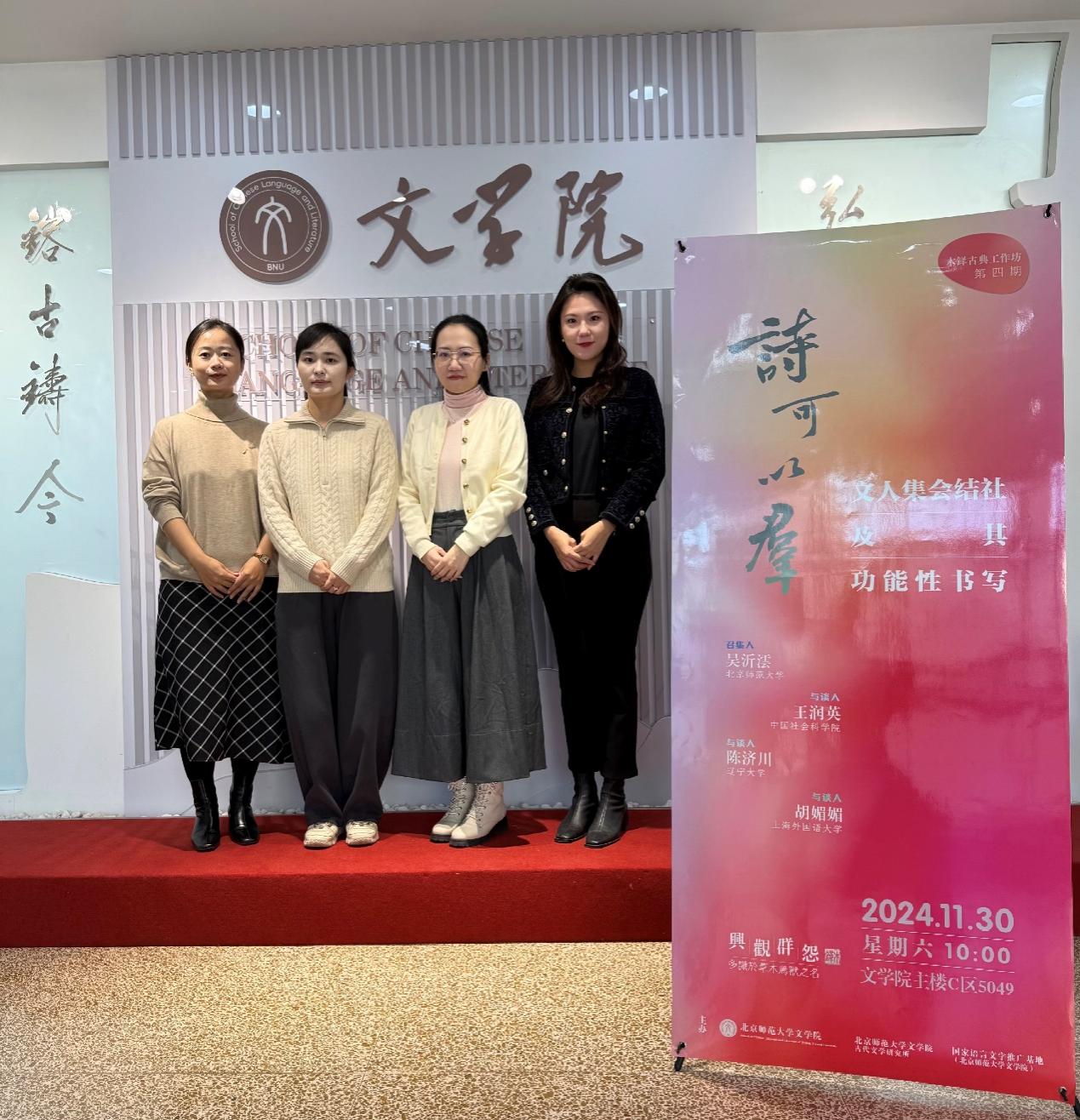 2024年11月30日上午,北京师范大学文学院古代文学研究所、国家语言文字推广基地(北京师范大学)联合主办了木铎古典工作坊第4期,题为“诗可以群?文人集会结社及其功能性书写”。来自中国社会科学研究院、上海外国语大学、辽宁大学和北京师范大学的青年学者参加会议。本期工作坊由北京师范大学文学院古代文学研究所吴沂澐主持。