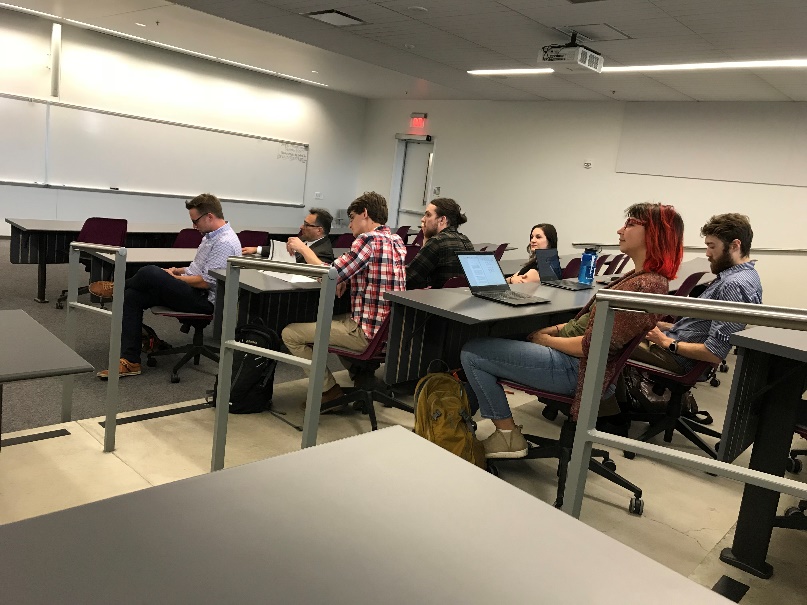 接下来,同学们纷纷投入到了学习生活中。俄勒冈的课堂精细而有趣,每个课堂都有五位助教,负责组织课堂讨论,以及课后回答同学疑问,同学们也相应被分成五组。教授们的课堂风格鲜明,英语论文写作课上Malewitz教授借助托尼·莫里森的短篇小说《宣叙》指导同学们文学评论的写作技巧;美国原住民文学课上Bernardin教授通过分析D’Arcy McNickle的小说《Train Time》,讨论了美国原住民文学中原住民与外来移民者的文化冲突;文学作品精读课上Davison教授通过厄普代克的短篇小说《A&P》解读美国现实主义与现代主义小说的风格特征与阶级思考,Ward教授则选取了一则名为《Goblin Market》的长篇诗歌,分析其写作技巧、主要意象的象征意味,以及其中对资本主义的些许隐喻;俄勒冈当地文学课上Moore教授带领同学们阅读小说《永不让步》中的片段描写,又联系当地环境与人文特征,介绍俄勒冈文学与作家群……每一堂课都有着明确的主题和思路。在教授们的鼓励机制下,同学们的积极性也极其高涨,课堂上时而有激昂的讨论,时而迸发出观点契合的开心笑声。第一周的学习时光匆匆结尾,同学们在身体的时差中认真地预习阅读材料,朋友之间也互相帮助促进理解;茶余饭后的悠闲时光,却总是看到大家翻材料查单词的身影。