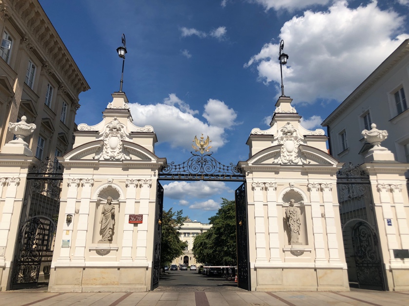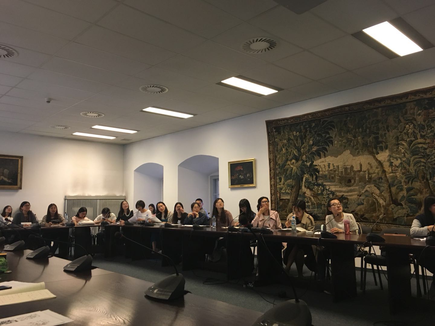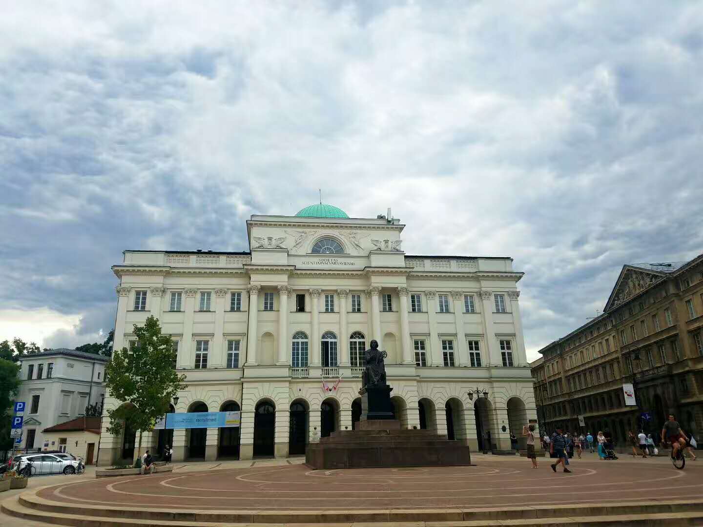 2018年7月9日,文学院的44名师生正式踏入华沙大学开始为期三周的暑期学习。华沙大学的赫西博士主持了开营仪式,热情欢迎北师大文学院同学们的到来。我们在华沙大学内部的一间大礼堂上课。课堂现代设备应有尽有,但桌椅又有古色古香之风气。深褐色的木头陈设,现代化的课堂展示,在现代感与历史感的交织中,我们走进华沙。