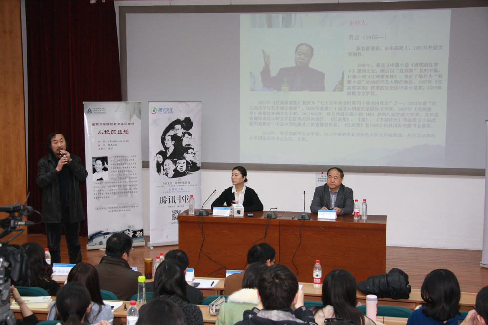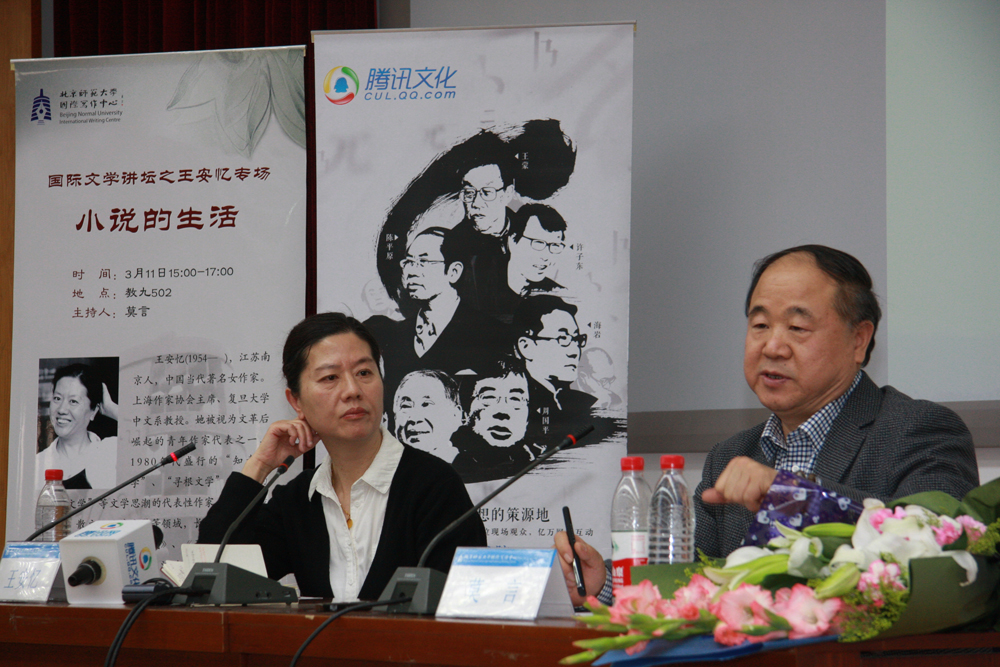 3月11日下午,由北京师范大学国际写作中心、文学院主办的“文学的春意”北师大国际写作中心春季系列活动之一“国际文学讲坛之王安忆专场”在北京师范大学教九楼502教室举行。著名作家、复旦大学中文系教授王安忆以“小说的生活”为主题,与北师大师生进行了精彩对谈。活动由北京师范大学国际写作中心主席、主任莫言主持。北京师范大学文学院院长过常宝,中国当代文学研究会理事蒋原伦,北京师范大学文学院副院长、教授张清华,北京师范大学文学院副教授、诗歌批评家谭五昌,北京师范大学国际写作中心副主任、文学院副教授梁振华作为嘉宾出席本次对谈。