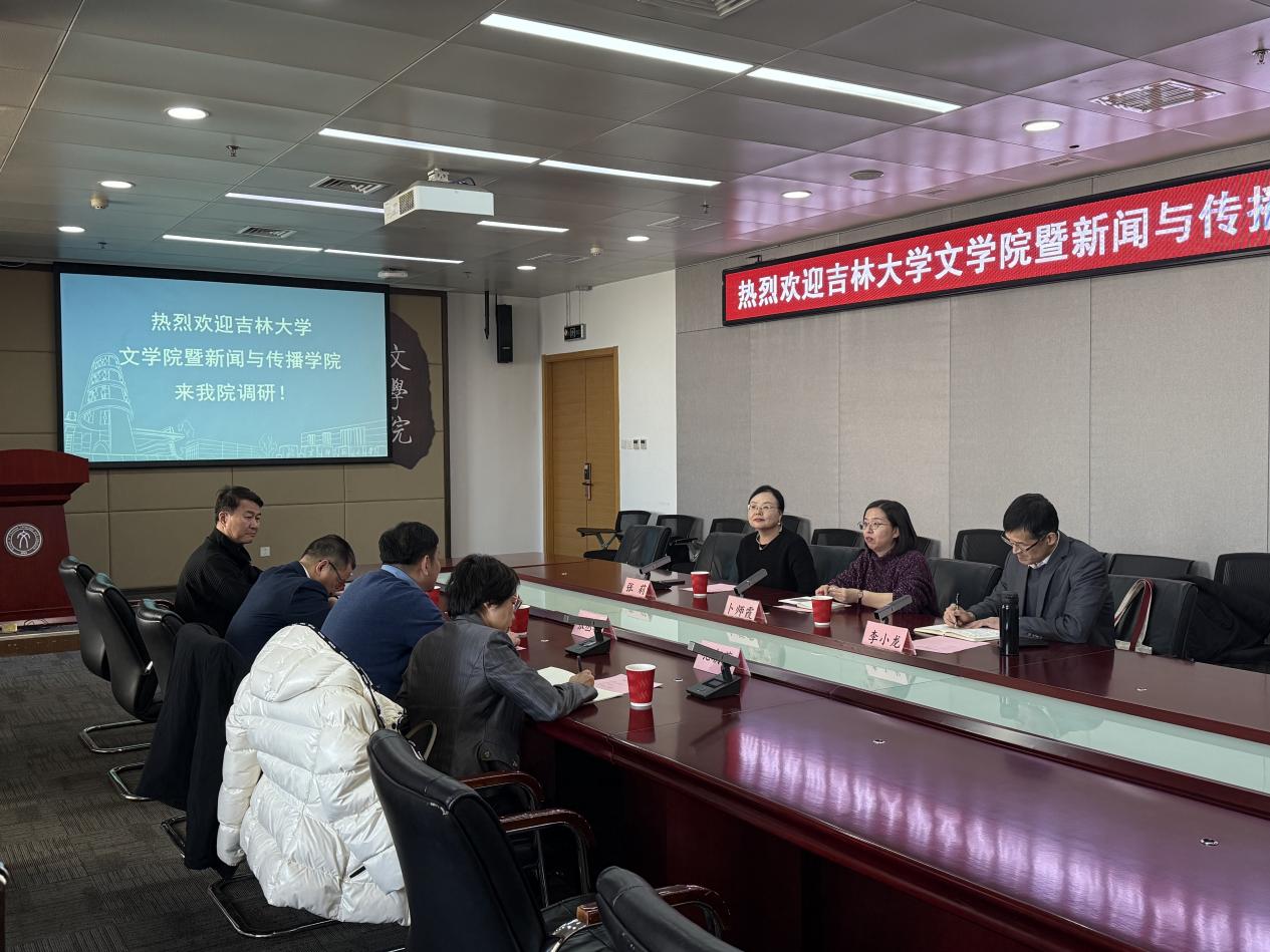 2025年3月6日下午,吉林大学文学院暨新闻与传播学院院长张丛皞、文学院副院长李子君、新闻与传播学院副院长孔朝蓬、校友办公室主任田鹏一行4人前来我院调研。座谈会由我院副院长卜师霞主持。